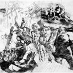 Verwirrte Gesellschaft beim Erscheinen der apokalyptischen Reiter